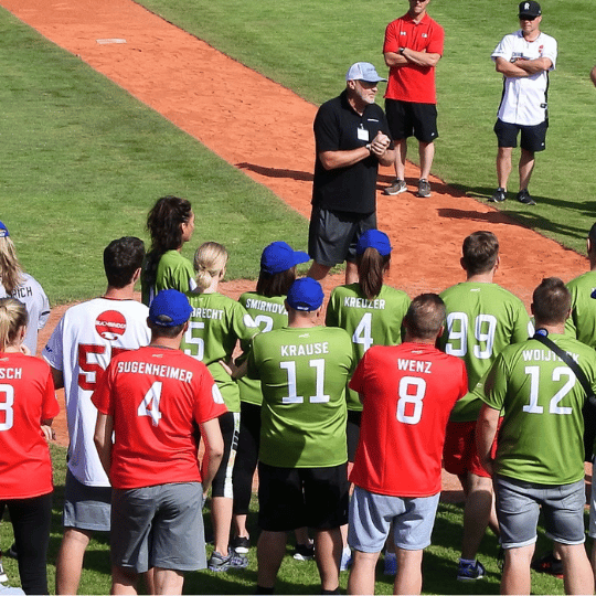 Dieser Sport hat es in sich, denn Baseball gilt als perfekte Verbindung von Leistung, Strategie und Teamgeist. Erleben Sie die eigenwillige Faszination dieser Sportart hautnah: Sie stellen das Team und die Spieler der Bundesliga zeigen Ihnen, wie’s geht. Dabei moderiert der 11-fache Deutsche Meistertrainer die wichtigsten Spielzüge und macht Ihre Mannschaft fit für das anschließende Turnier. Schnuppern Sie die knisternde Atmosphäre, feuern Sie das Team an und genießen Sie ein paar Stunden voller Fun und Action im schönsten Baseball Stadion Deutschlands.